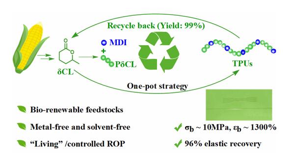 the team of shen yong and li zhibo from qingdao university of science and technology used a series of ring-opening polymerization/polycondensation reactions to prepare thermoplastic polyurethane elastomers with excellent properties in a one-pot method under solvent-free conditions. it is worth noting that in the presence of catalyst, the prepared polyurethane elastomer can be recovered by vacuum distillation to obtain high-purity δ-caprolactone (δcl) monomer (yield ∼99%).