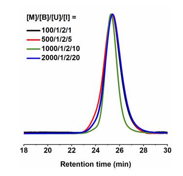 figure 3. gpc curves of pδcl at different catalyst concentrations