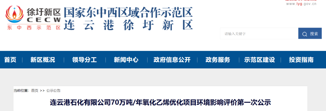 latest news: on july 20, the environmental impact assessment of lianyungang petrochemical co., ltd.’s 700,000 tons/year ethylene oxide optimization project was announced for the first time.
