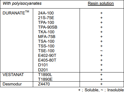 duranatetm 22a-75px can be thinned with esters, ketones and aromatic.hydrocarbons such as ethyl acetate, butyl acetate, methoxypropylacetate (pma),methyl ethyl ketone, methyl-butyl ketone, cyclohexanone, toluene, xylene, solvesso#100 and mixture thereof. generally speaking, it has good compatibility with thesolvents mentioned. however, the solutions formed must be tested for their storagestability.