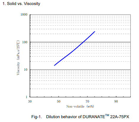 duranatetm 22a-75px should not be thinned to below a solid content of 40%.prolonged storage of solution with lower solid content may result in turbidity andsedimentation.