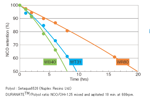 nco content of wb40-100 measured after agitation and at indicated time (t) thereafter.