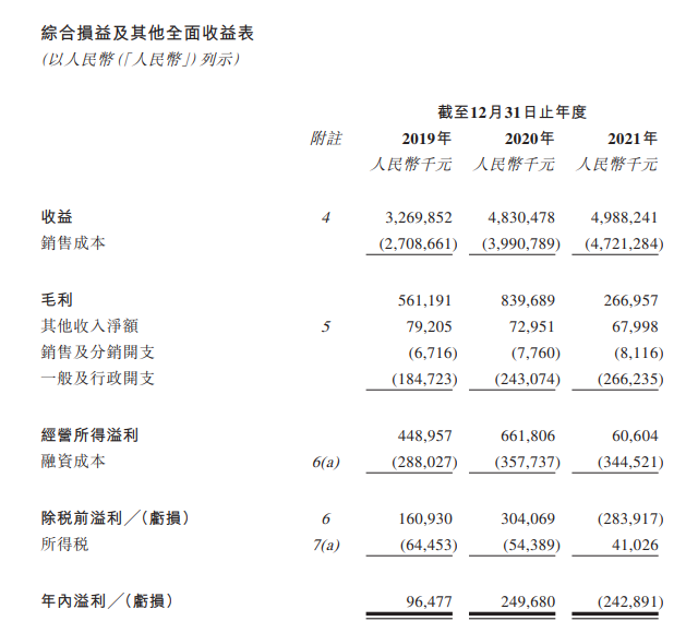 3.270 billion, 4.830 billion and 4.988 billion yuan, with corresponding net profits of 96 million, 250 million and -243 million yuan respectively.