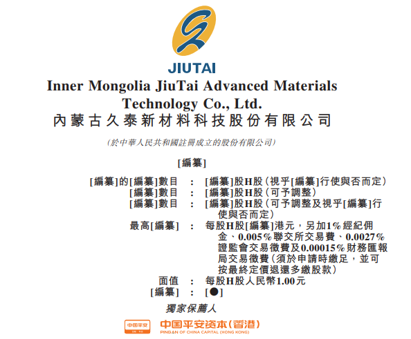 materials technology co., ltd. (referred to as “jiutai new materials”) submitted a prospectus on the hong kong stock exchange and planned to issue h shares on the main board of hong kong.