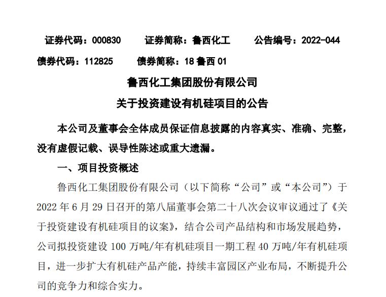 luxi chemical plans to invest 3.33 billion yuan to build a silicone project
