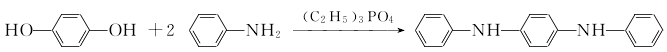 hydroquinone and aniline react under the catalysis of triethyl phosphate for a certain period of time at 280~300℃ and a pressure of 0.7mpa. after the reaction, vacuum distillation was performed. excess aniline is removed first under low vacuum, and then the intermediate is evaporated under higher vacuum. the remaining materials after steaming the intermediate are sliced, powdered, and packaged to become the finished product. the synthesis reaction is as follows