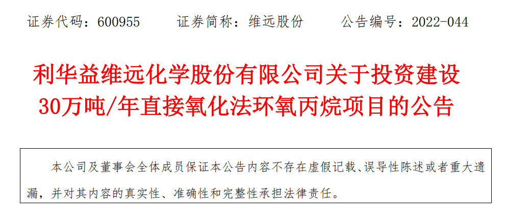 latest news: on september 14th, dongying ecological environment bureau plans to issue approval opinions on the environmental impact assessment documents of several construction projects, including lihua yiweiyuan chemical co., ltd. 300,000 tons/year direct oxidative propylene oxide project.
